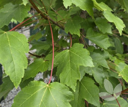 Compact, slow growing small tree with a dense round canopy, and a somewhat corky bark. Small leaves with rounded lobes, dark green in summer, which turn a beautiful clear yellow in the autumn. Green inconspicuous flowers from September to October. Paired samaras spread throughout the tree and hang in clusters well into winter.