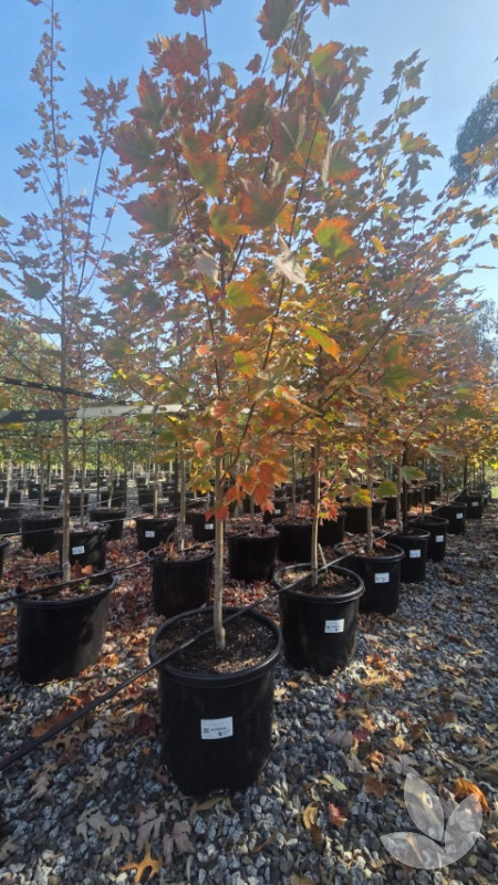 This is a very common deciduous tree in North America. It is a beautiful rounded tree with ascending branches when young, maturing to a more rounded canopy. Great for autumn colour. Leaves stay green longer than other varieties before turning bright orange to deep lipstick red. All parts of the tree, for example flowers, twigs and seeds, are red in varying shades. This tree is also known as 'October Glory' or 'April Splendour'.