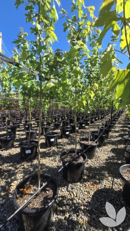 This is a medium to large shade tree with ascending branches when young, maturing to a more rounded canopy. Known for great autumn colour. The traditional maple-shaped leaves turn bright red in the autumn providing fantastic contrast to its green surroundings. The bark is smooth and dark greyish brown.