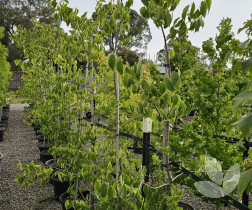 This deciduous tree originates from Southern Europe where it is accustomed to heat, making it a good selection for Australian gardens. With glossy, dark green leaves that turn yellow in autumn and smooth grey bark and mottled appearance, it is an attractive selection for areas prone to little if no irrigation or natural rainfall. It produces black fruit which attracts birds. Drought-tolerant.