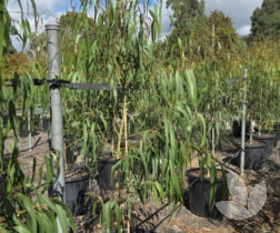 This is a slightly narrow-domed Corymbia (syn. Eucalyptus), developed by Speciality Trees, doesn't shed its branches. It has a smooth trunk that may be slightly mottled. The bark is a pinky-salmon in colour. Leaves are narrow and highly aromatic when crushed smelling strongly of lemon. This tree features lovely cream-coloured flowers in summer.