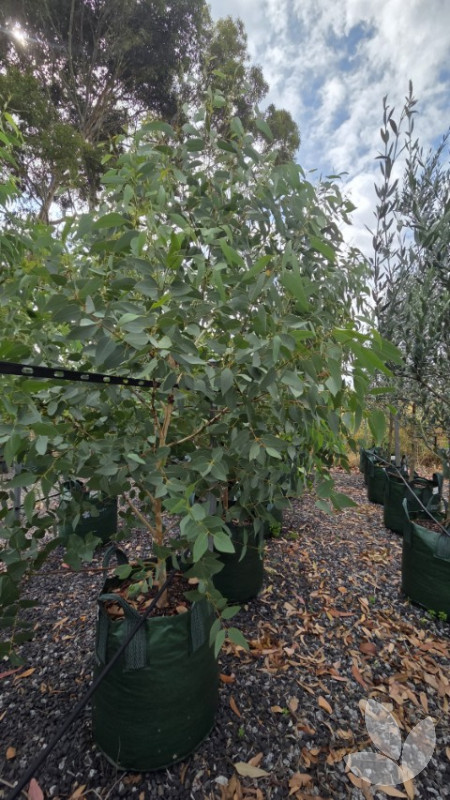 A great choice where height restrictions are of concern, this shapely dwarf Eucalypt has a light, open canopy with a single trunk and smooth bark that sheds. Once more mature its grey-green leaves once mature are offset by masses of nectar-rich blossoms from late autumn to early summer, attracting native birds to the garden. NOTE: Seed grown - natural variation means individual tree may be a pink, red or cream flowering form.
