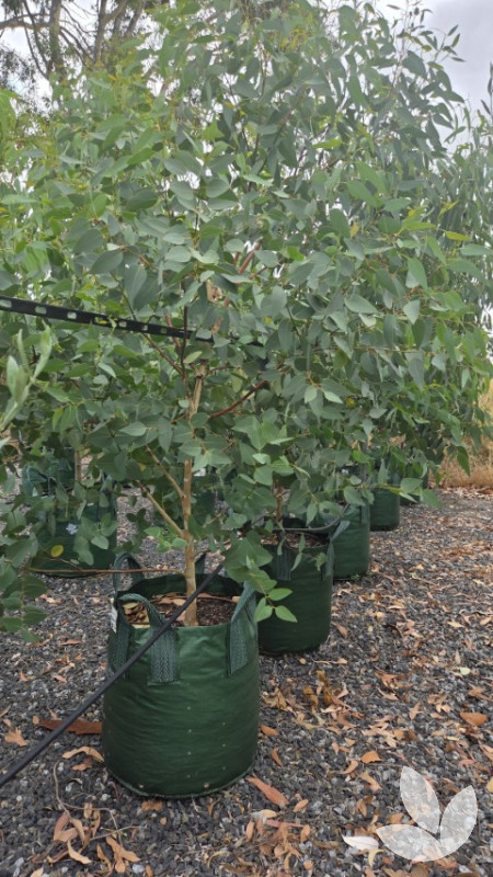 A great choice where height restrictions are of concern, this shapely dwarf Eucalypt has a light, open canopy with a single trunk and smooth bark that sheds. Once more mature its grey-green leaves once mature are offset by masses of nectar-rich blossoms from late autumn to early summer, attracting native birds to the garden. NOTE: Seed grown - natural variation means individual tree may be a pink, red or cream flowering form.