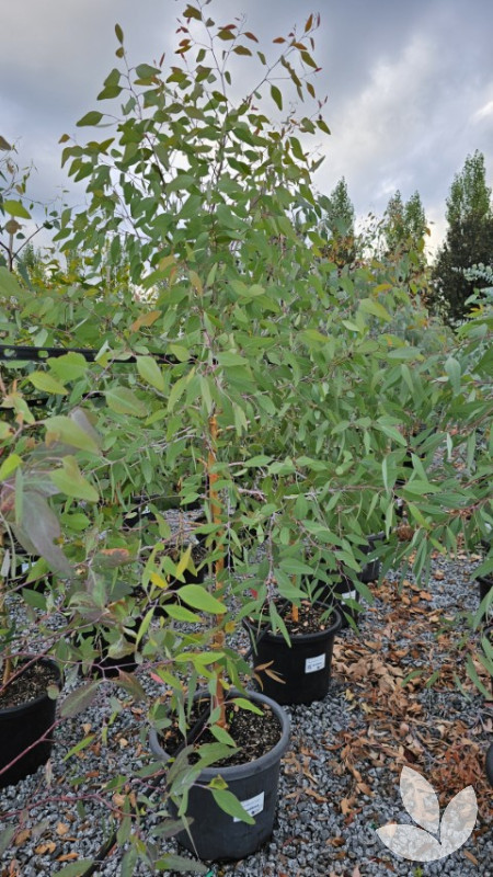 This Australian native tree is indigenous to eastern Australia. It has distinctive, very dark brown to black coloured bark which is deeply furrowed and does not shed. The dramatic bark provides contrast to the foliage which is blue-grey-green mix in colour. From winter to early spring, pink to red flowers are borne in clusters of seven.