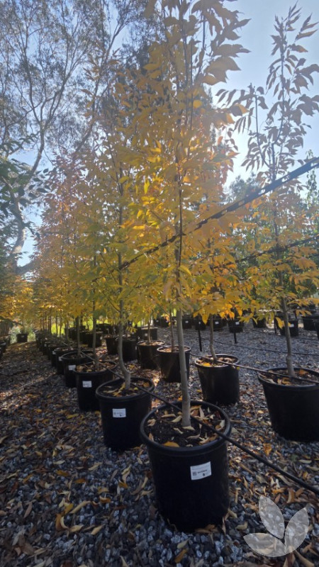 This is a striking feature tree which provides great summer shade. It has a uniform branch structure with bark which becomes deeply furrowed as it matures. Attractive dark green foliage is lighter on the underside and transitions through an array of colours starting with yellows, fiery reds and rich burgundy as the weather cools in autumn. The leaves hold onto the tree longer into winter than other varieties of this species.