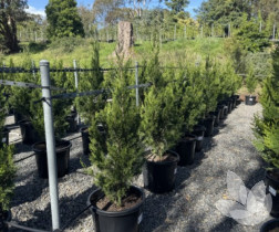 This conifer is hardy and relatively fast growing, and is immune to canker disease. It has very dark green foliage, an upright, conical habit and produces small, fleshy berries. It is a very dense grower which requires little to no pruning, however, if pruned, responds very well, making it an ideal choice for topiary and hedging.