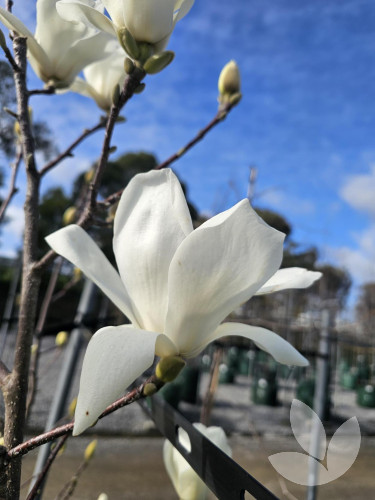This is among one of the oldest forms of Magnolia grown today. A symbol of purity, beautiful, ivory white, goblet shaped blooms appear on bare limbs from late winter to early spring, releasing a subtle citrus scent into the air. Leaves are dark green above with lighter tones on the undersides. This variety is slow growing with a short trunk and non-invasive, shallow root system, making it suitable to plant closer to buildings, providing highly sought after shade in summer.