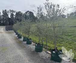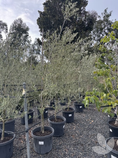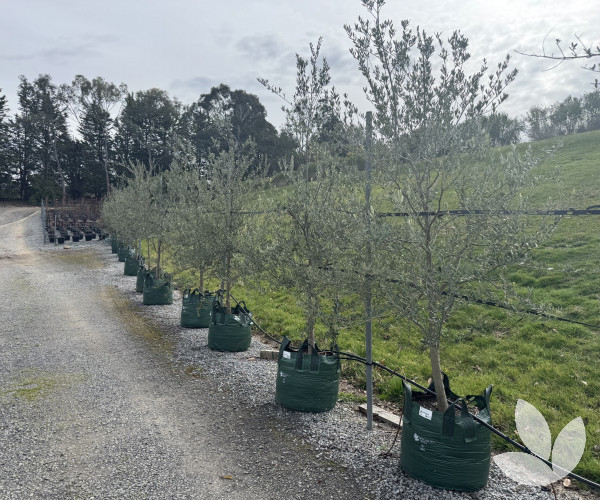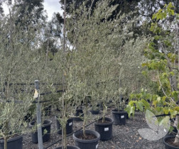 A small growing tree with leather-like leaves which are green with silver undersides. It produces black edible fruit annually. A great table olive and used for its oil.