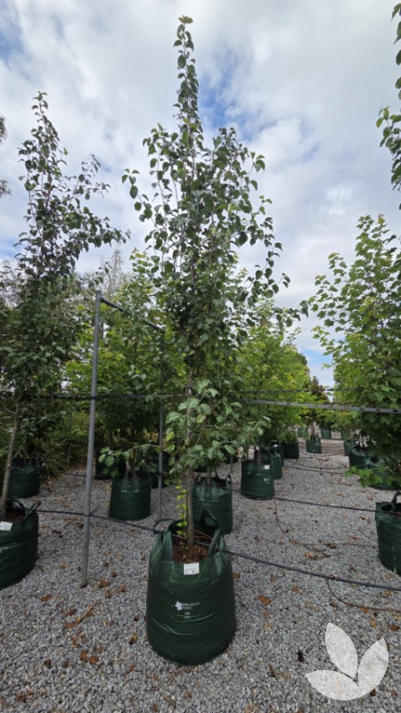 This is an ornamental pear that starts off pyramidal in shape when young, but become broader with age. Foliage is a glossy green and heart-shaped, and typical of callery pear tree turns it on in late autumn with foliage turning a myriad of reds, oranges and yellows. Blossum covers the tree in spring.