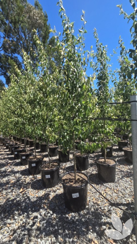 This is a deciduous (often referred to as semi-deciduous or even evergreen) medium-growing ornamental pear. It is a popular screening variety as it holds leaves well into late winter, with only a brief period of dormancy. In temperate climates, it can hold its leaves all the way through winter hence its representation in some places as an evergreen pear. Glossy, green foliage turns beautiful yellows and bronzes in autumn and by early spring, pink-eyed, white blossoms appear. This is a hardy variety with great, ornamental features throughout much of the year.