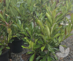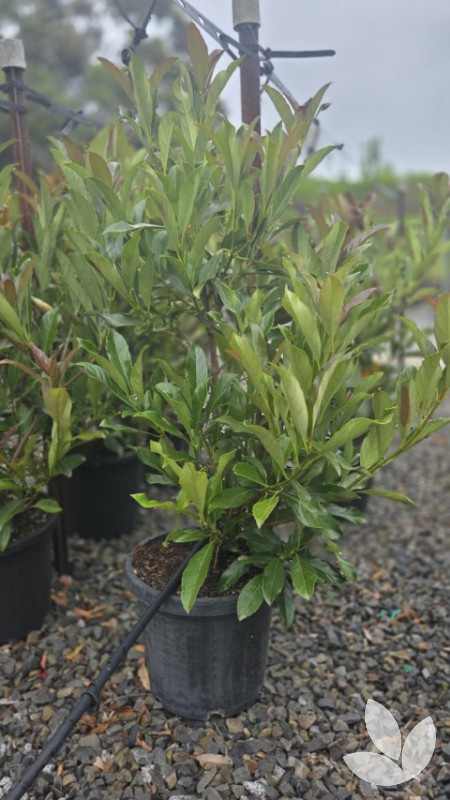 This is a new variety to the market of the very popular sweet viburnum where leaves are more slender in shape and more glossy. A visual point of difference is in the darker colour of its foliage - almost chocolate - and this is very noticeable in new spring growth. It is dense and compact making it perfect for hedging. In spring it produces small white flowers that are fragrant and butterfly-attracting.